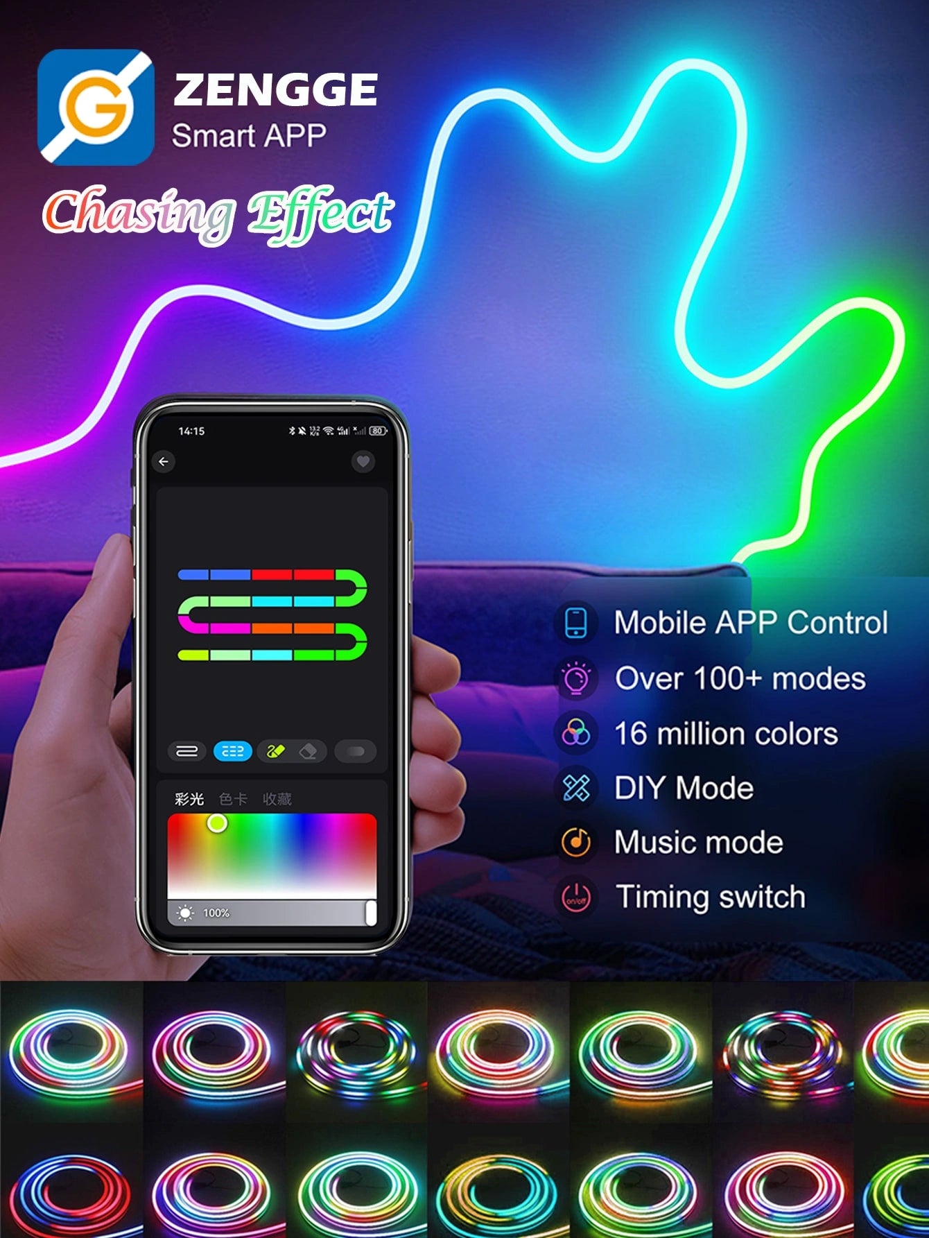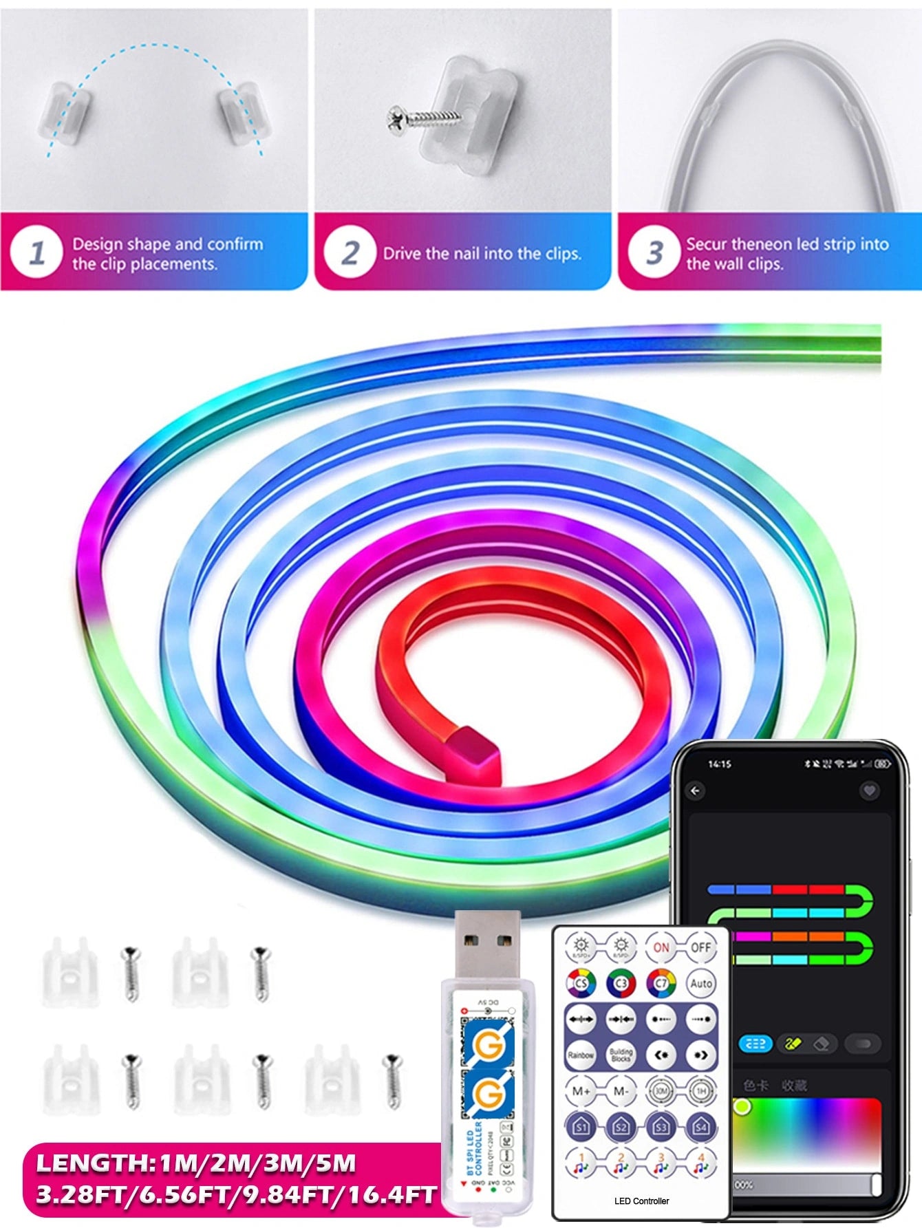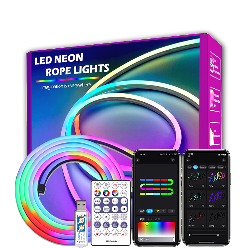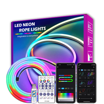 5V RGBIC Neon LED Strip Light with Controller and Fixed Light Strip Clip, Smart Dreamcolor Flexible Strip Light Can be Controlled with App WS2812B USB Color Changing LED Light, Music Sync Neon Rope for Home Bedroom Game Room Indoor.